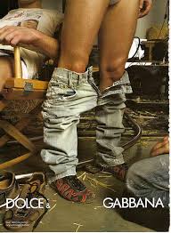 This Dolce & Gabanna ad though vulgar to most it is advertising their jeans as well as their shoes. If you look closer as this ad you see some things most would not notice at first glance first there you would see a man standing with pants down around his ankles and another behind him sitting in a chair with no pants on. If you look closer you see in the corner another mans legs bending in front of the other man in a provocative position. The ad fits this particular brand since they were the first to target the gay consumer and their advertising has always been controversial. This ad was a remake of the Puma ad that had a women crouching in front of thee man and like most Dolce & Gabanna ads they spun it to fit their way of advertising. Subliminally suggested is a man giving the other oral sex while another man is sitting behind looking in that general direction. In history no one would ever think of advertising something so provocative especially something that is insinuating a gay sexual incounter. I feel this advertisement is intriguing it shows something that before would of been to much and is not trying to hide what many in todays world can not deal with while reaching a particular consumer group.
